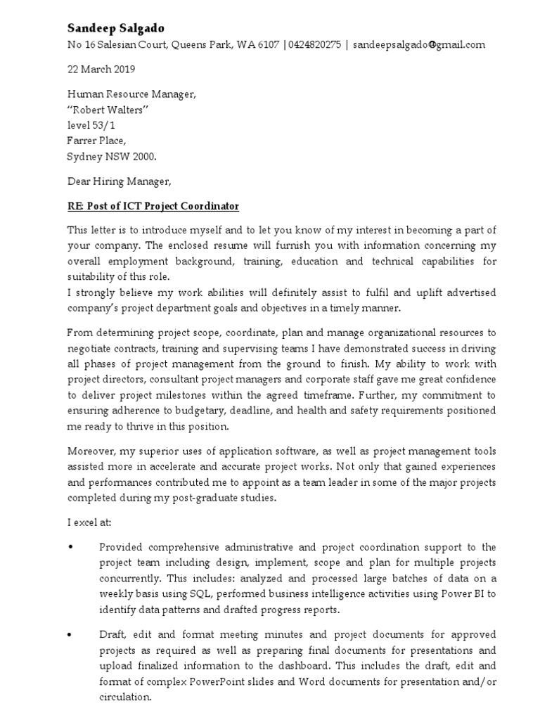 I believe that my strong performance in my latest employment, as well as my superb professional and personal skills, makes me a perfect candidate for the position. Its purpose is to introduce you a bad cover letter, on the other hand, might mean that your application is going directly to the paper shredder. Writing a unique cover letter can significantly increase your chances of being asked to come in for an interview. Coordinates the efforts of recruitment and placement professionals by conducting background checks etc. This cover letter is a perfect example of how to write an interview winning one. Customize each cover letter with a proper address, do not use to whom it may concern. Check out this hr coordinator cover letter example for tips and hints that can help your writing go a long way. In order to stand out companies want you to present your relevant work history and skills according to the job you are applying for. For the past 3 years, i have worked as a procurement coordinator at my international, inc. This cover letter was written by resumemycareer's staff of professional resume writers, and demonstrates how a cover letter for a program coordinator cover professional resume writing services can significantly increase your changes of securing employment in a quick time manner. Get inspired by this cover letter sample for program coordinators to learn what you should write in a cover letter and how it. During my three years of employment, i was recognized twice as the extra mile achiever. Writing a employment coordinator cover letter is your introduction to the hiring manager.
